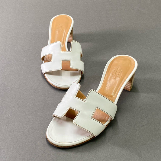 3d14 《美品》定価¥135.300 HERMES エルメス オアジス サンダル 35 / 22.5cm ホワイト カーフレザー イタリア製 シューズ 夏 保存袋付き