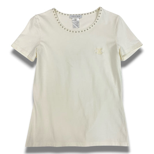 Ic2 CELINE セリーヌ トリオンフネック ロゴ 半袖Tシャツ カットソー M アイボリー コットン レディースu02t