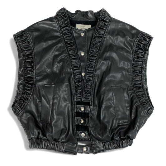 8L5【美品】FUMIE TANAKA フミエタナカ ギャザーベスト フェイクレザーベスト 裏起毛 日本製 F23A-16 2サイズ ブラック レディースu02t