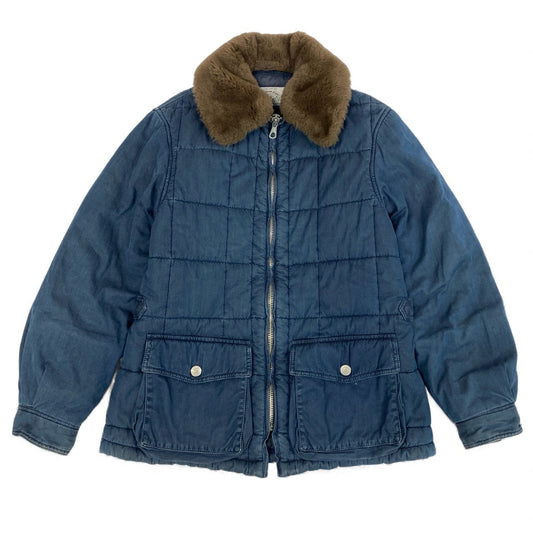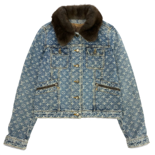 54L5 LOUIS VUITTON ルイヴィトン モノグラム デニムジャケット ミンク付け襟 取外し可 サイズ38 インディゴ レディース アウター ジャケットk02i
