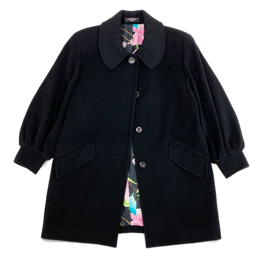 8L5【美品】LEONARD レオナール カシミヤコート ロングコート 美しい花柄プリント アウター 11ARサイズ ブラック カシミヤ100% レディースu02t