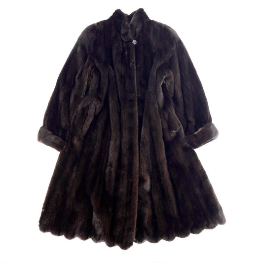 54L4 AMERICAN FUR AWARDS アメリカンフォーアワード 4つ星 マホガニーミンク 裾フリル 超ロングコート 丈110cm サイズM ブラウン 最高級本毛皮 MINK FURt18r