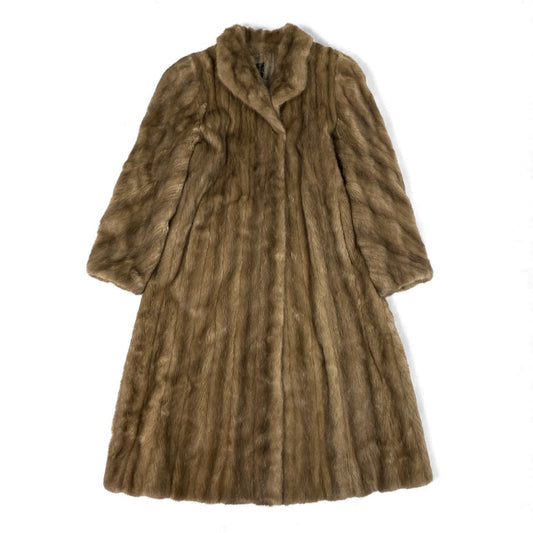 54L4 CRESCE 斜め段デザイン デミバフミンク 着丈110cm 超ロングコート サイズ11号 茶系 最高級本毛皮 MINK FUR リアルファーt18r