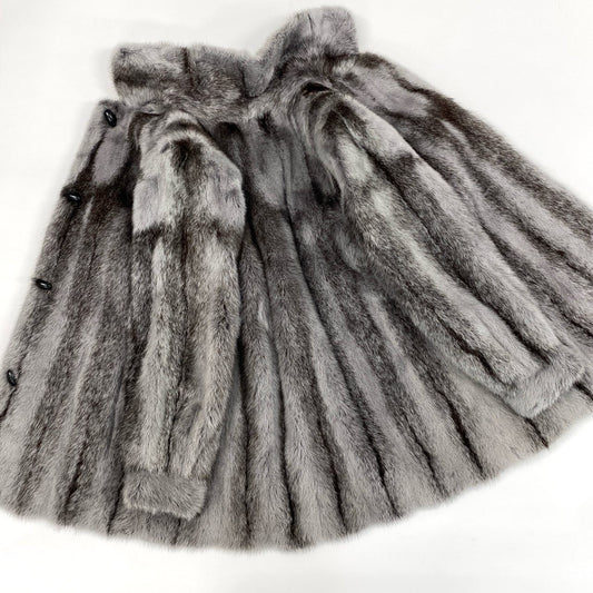 17j16 Revillon レヴィヨン クロスミンク 毛皮コート ミンクコート ファーコート リアルファー 装飾ボタン グレー レディースu02t