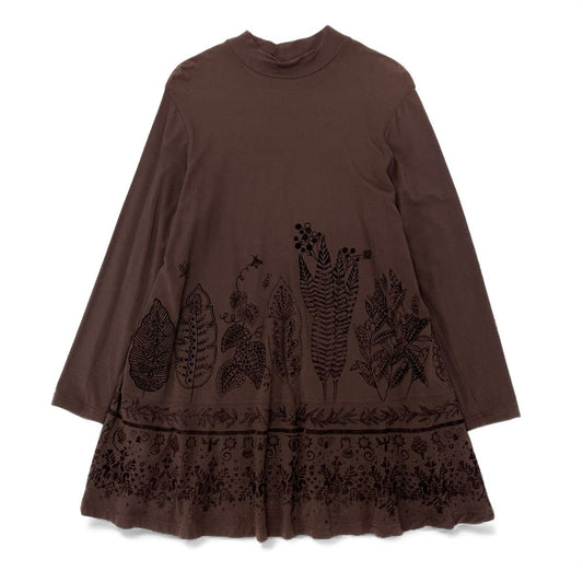 20Ⅼ2 TOKUKO 1er VOL トクコプルミエヴォル ロングスリーブワンピース チュニックワンピース モックネック ボタニカル柄 ストレッチ レディース 9 ブラウンu02t