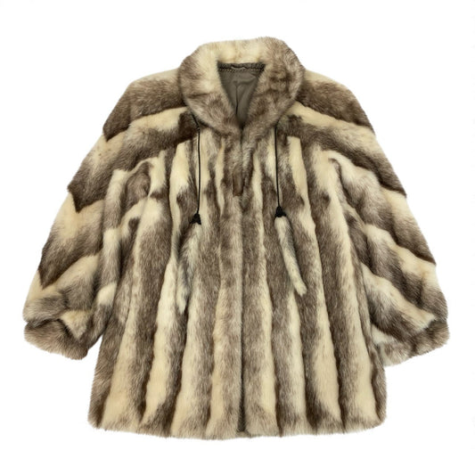 54L4 クロスミンク 飾り付き コート サイズ9号 ホワイト ブラウン 本毛皮 MINK FUR リアルファー ポケット有t18r