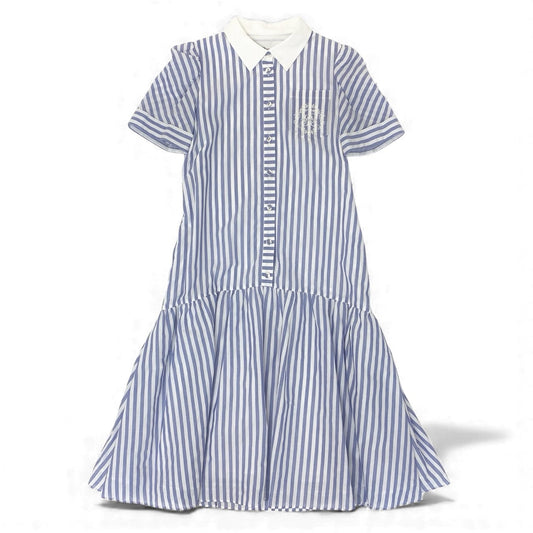 20L2 Rene ルネ TISSUE 半袖シャツワンピース ロングワンピース ストライプ柄 胸元刺繍 ビース装飾 36 ブルー ホワイトu02t