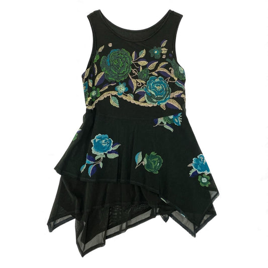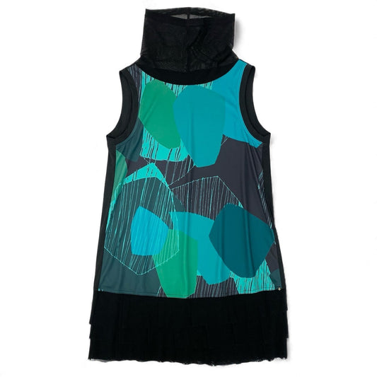 20L2《美品》 TOKUKO 1er VOL トクコプルミエヴォル ノースリーブワンピース シアー タートルネック 裾フリル 総柄プリント レディース 9 ブラック グリーン ポリエステル100%u02t