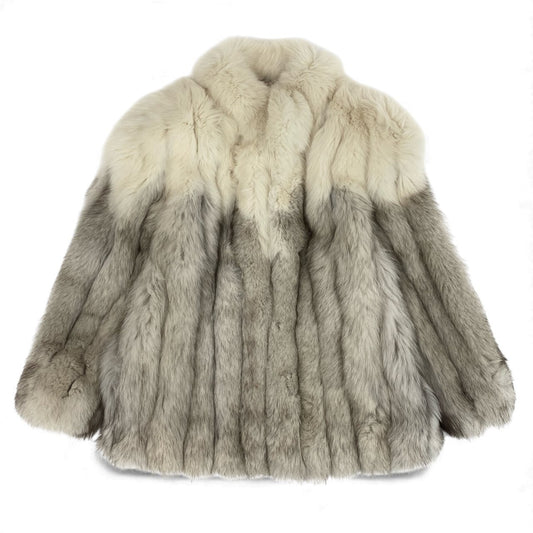 54L4 JINDO SAGA FOX サガフォックス 銀サガ ブルーフォックス セミロングコート サイズL ホワイト 最高級本毛皮 FOX FUR リアルファーt18r