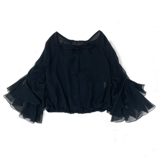 20Ⅼ2 《美品》 TOKUKO 1er VOL トクコプルミエヴォル バルーン シアーシャツ 長袖ブラウス フリルスリーブ レディース 女性用 9 ブラックu02t
