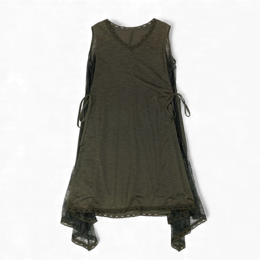 20L2《美品》 TOKUKO 1er VOL トクコプルミエヴォル ノースリーブワンピース フレアワンピース サイド花柄レース ウエストリボン○ レディース 9 カーキu02t