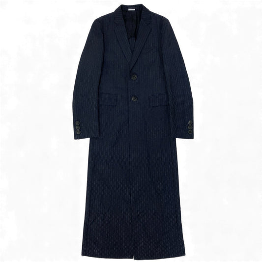 20L2【美品】COMME des GARCONS HOME PLUS コムデギャルソンオムプリュス ピンストライプ ロングジャケット 13SS ジャケットコート アウター PK-J026-051-2-1 XSサイズ ネイビー メンズo07t