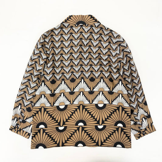 72j15《美品》MaxMara マックスマーラ シルクシャツ 長袖シャツ 幾何学模様 40サイズ ブラウン ホワイト ブラック レディースu02t