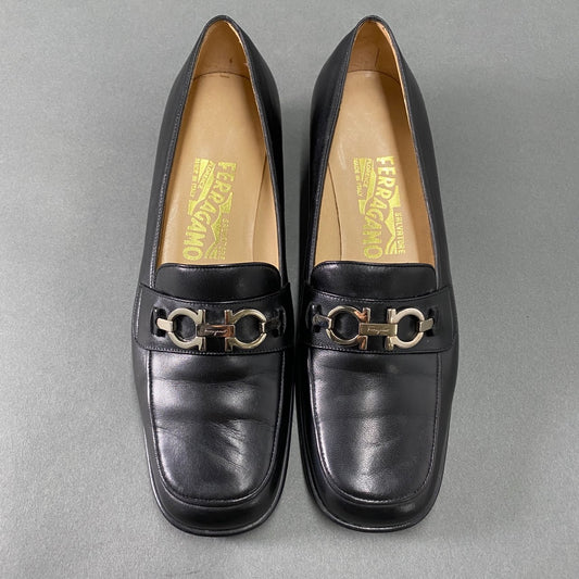 2L9《美品》Salvatore Ferragamo サルヴァトーレ フェラガモ ガンチーニローファー 7 ブラック レザー パンプス ホースビット イタリア製