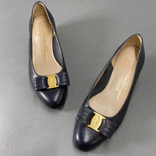 1L9 イタリア製 Salvatore Ferragamo サルヴァトーレ フェラガモ パンプス 7 ブラック ヒールパンプス リボン