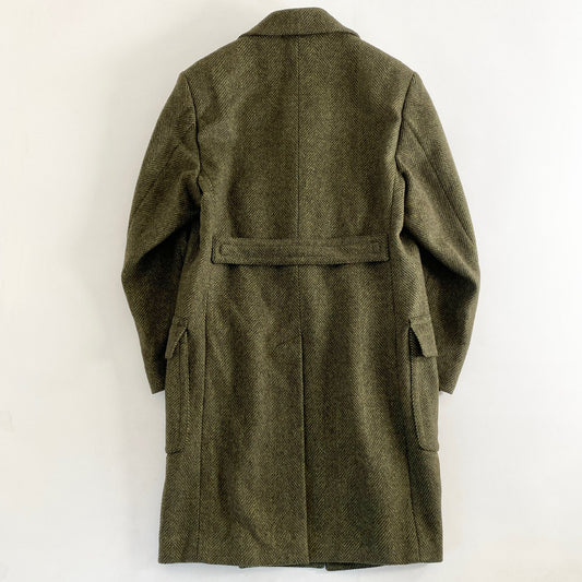 3L5《美品》伊製 VALENTINO ヴァレンティノ ヘリンボーンツイード チェスターコート ツイードコート I50(L相当) モスグリーン メンズ アウター