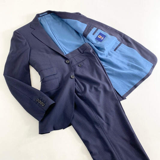 72L8《美品》dunhill ダンヒル JFA 日本サッカー代表モデル サムライブルー 2Bセットアップ スーツ ストライプ 44S ネイビー メンズ 通年向け