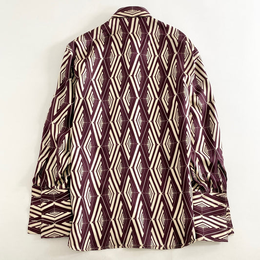 44L5《美品》VALENTINO ヴァレンティノ シルクシャツ 長袖シャツ 42 16/1/2(L相当) シルク100% Vロゴ メンズ