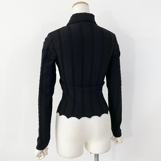 69L5《美品》ALAIA アライア 伸縮ニット素材 ジップカーディガン ジャガード タイトシルエット 36 ブラック レディース ダブルジップ