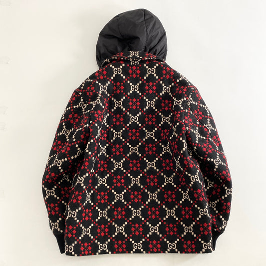4L9《美品》GUCCI グッチ 19AW Macro GG diamond ウールジャケット 46 ブラック マクロGGダイヤモンド 546330 Z507M