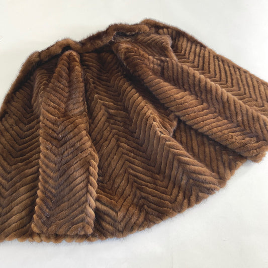50l4 最高級毛皮 ミンクコート ハーフコート 毛皮コート 13号 ブラウン デミバフミンク シェブロンカット レディース