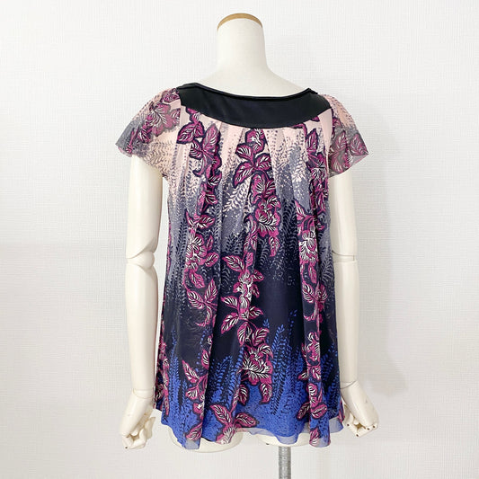 45L2《美品》VIVIENNE TAM ヴィヴィアンタム パワーネットブラウス 0 ブラック ボタニカル チュニック 日本製