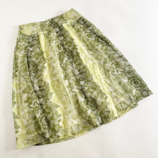 45L2《美品》GIVENCHY ジバンシー フラワーレースプリントスカート 38 グリーン ボトムス 日本製 花柄