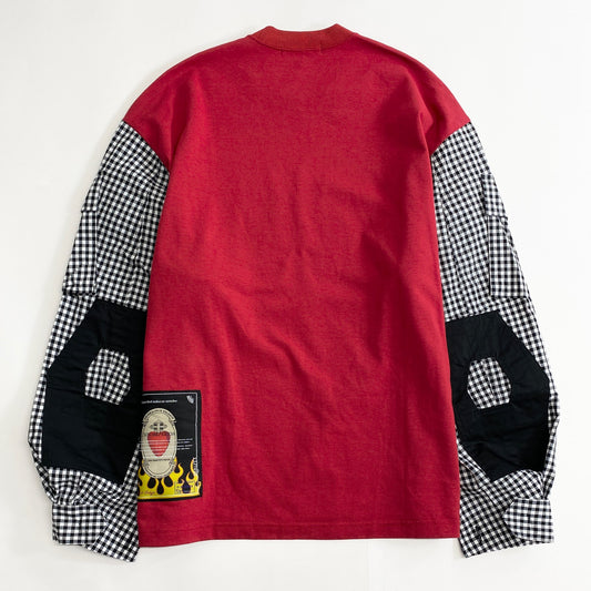 73k12《極美品》定価\30800 TENDER PERSON テンダーパーソン GINGHAM SLEEVE LONG TEE GY-TO-4225 1 レッド タグ付き ロンT