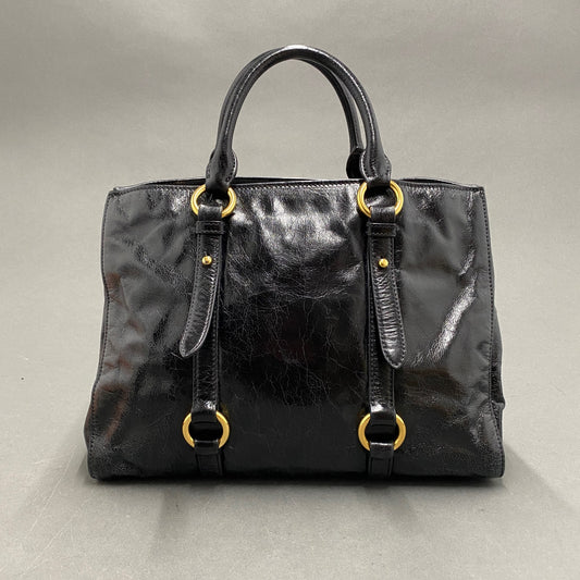 A1k14 miu miu ミュウミュウ 2WAY クラックレザー ショルダーバッグ ブラック ハンドバッグ ゴールドリング