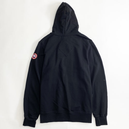 72k11《極美品》イタリア製 CANADA GOOSE カナダグース ワッペン付き フードパーカー スウェットパーカー LG ブラック 裏地パイル