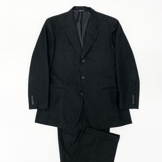51Ⅼ2 Brooks Brothers ブルックスブラザーズ セットアップスーツ シングル 3B ストライプ柄 ウール混 メンズ 紳士服 ビジネス 40REG ブラックu02t
