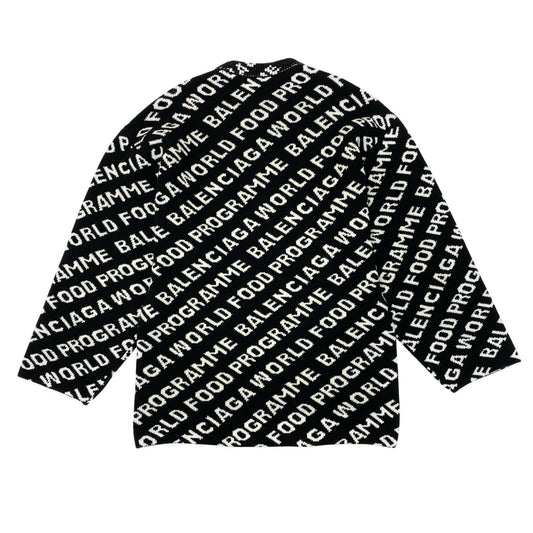 83Ⅼ2【極美品】BALENCIAGA バレンシアガ 20AW ロゴクルーネックニット ニットセーター イタリア製 Mサイズ ブラック ホワイト メンズo07t