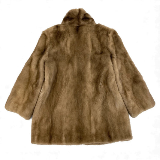 26L1 パステルミンク コート サイズ15号 茶系 本毛皮 ポケット有 MINK FUR COAT リアルファー 裏地刺繍t18r