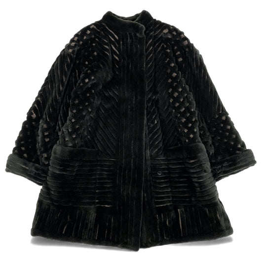 27L1 MONDEREVE シェアードリアルファー ロングコート サイズF ブラック 本毛皮 レアデザイン 格子柄 ポケット有t18r