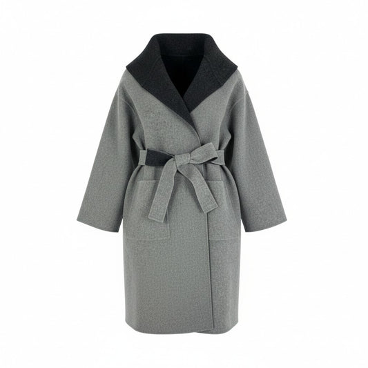 14L1 【美品】bamford バンフォード ウールロングコート リバーシブルコート フーデットコート アウター イタリア製 Mサイズ相当 グレー レディースu02t