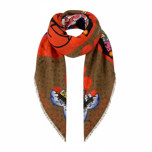 Ⅼ2 LOUIS VUITTON ルイヴィトン モノグラム エトール カブキ スティッカー 大判ストール カシミヤシルク MP1941 ベージュ ユニセックスk02i