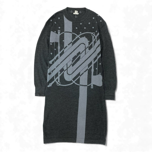 66l1 HERMES エルメス CLIC CLAC クリッククラック ニットワンピース ロングスリーブ カシミヤシルク混 ドット柄 水玉 レディース 女性用 17-7707 34 ダークグレーu02t