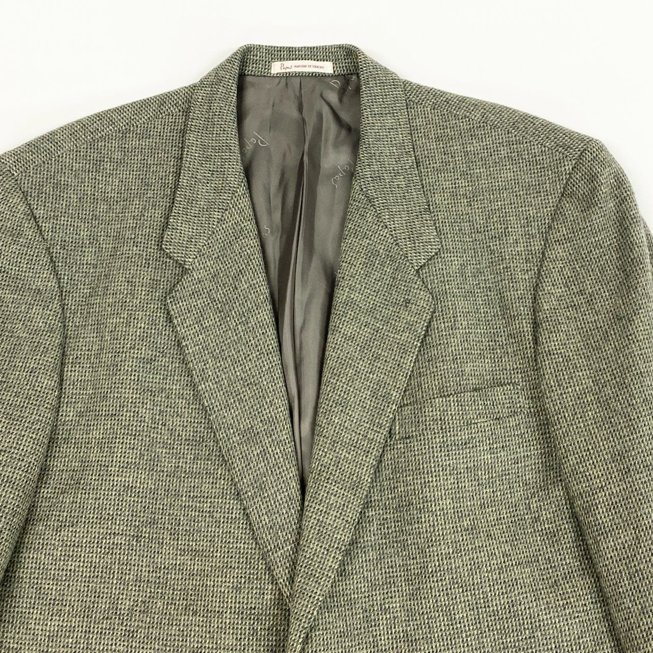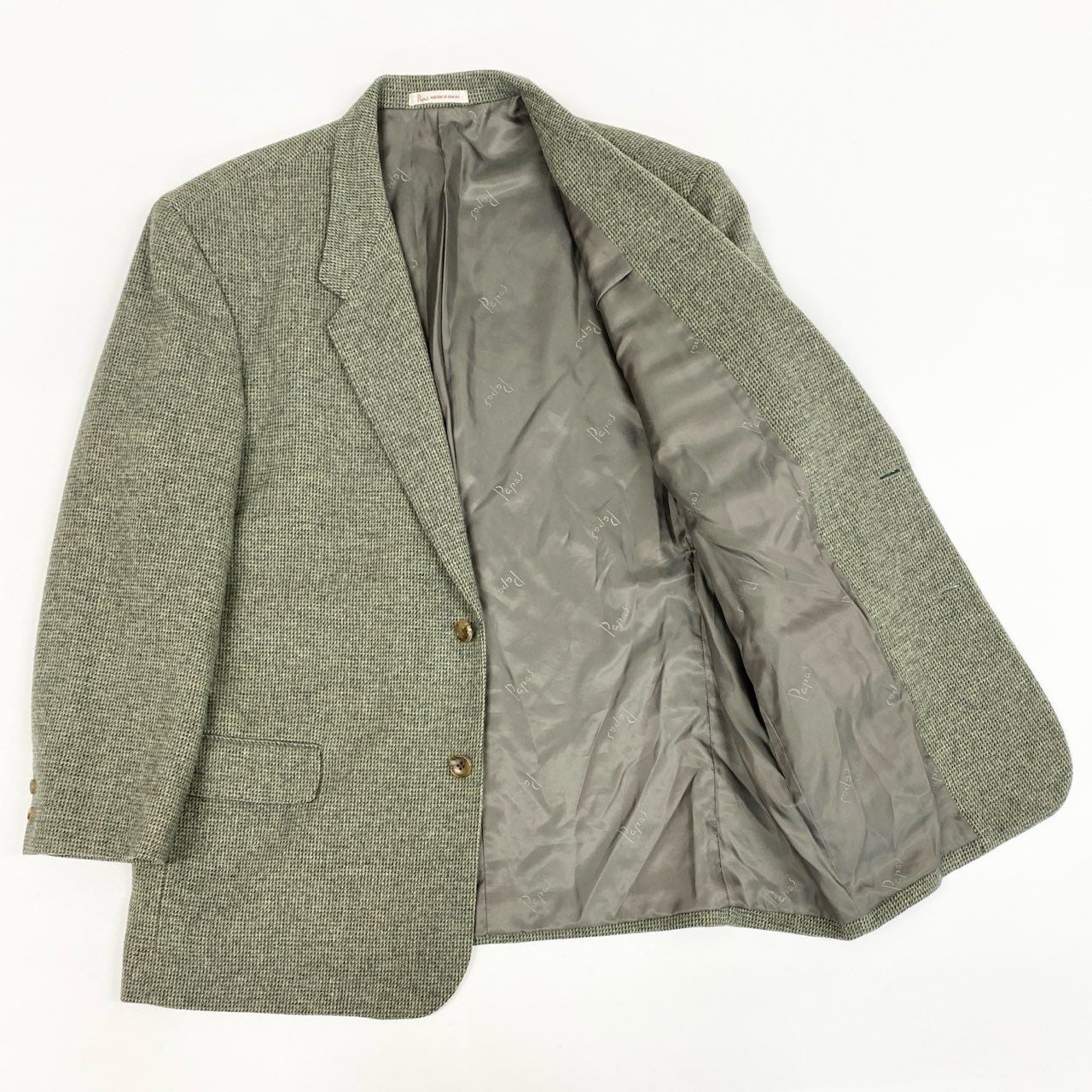 52L9 Papas パパス 英国 Joshua Ellis生地 ツイードジャケット テーラードジャケット L グリーン系 ウール カシミヤ メンズu02t
