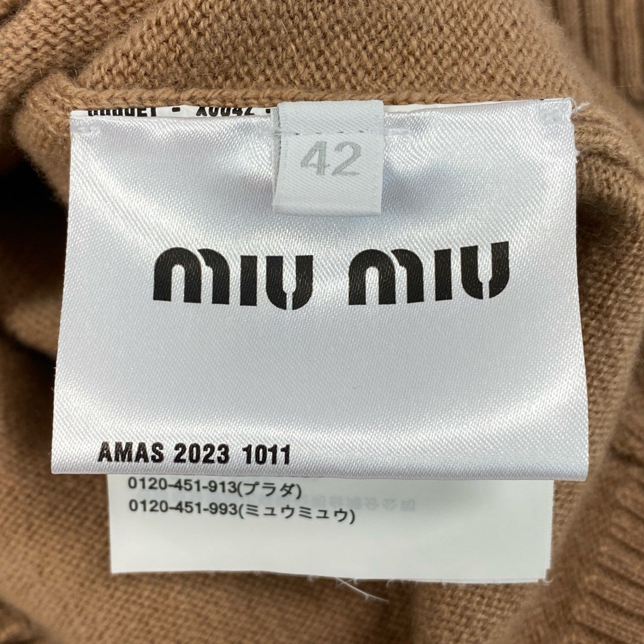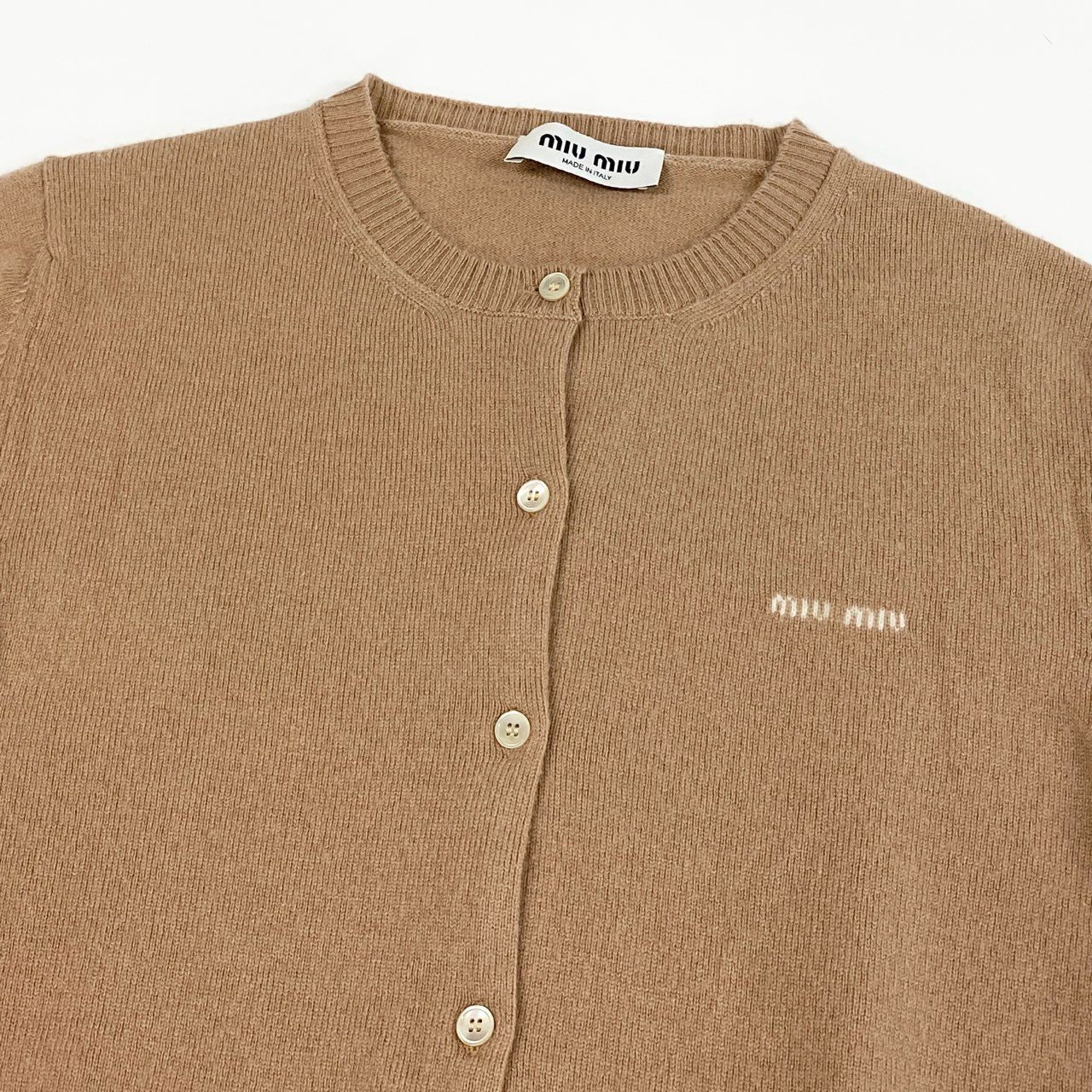30a9 miu miu ミュウミュウ ロングスリーブ ニットカーディガン カシミヤニット 胸元ロゴ 刺繍 イタリア製 レディース サイズ42 ベージュ カシミア100%o07t