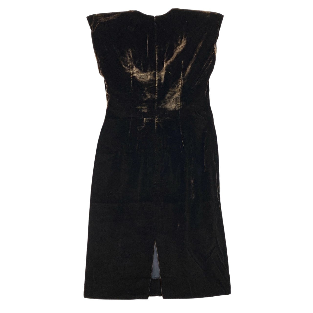 Christian Diorのヴィンテージならではの品格が漂う、ダークブラウンカラーのベルベット・カクテルドレスです。毛足のあるベルベット素材に、角度で表情が変わる陰影が美しく映え、無地ながら存在感のある一着に仕上がっています。フロントの切り替えデザインが立体感を生み、ボディラインを上品に演出。パーティーやディナー、フォーマルな夜のお出かけにおすすめのクラシカルなワンピースです。
