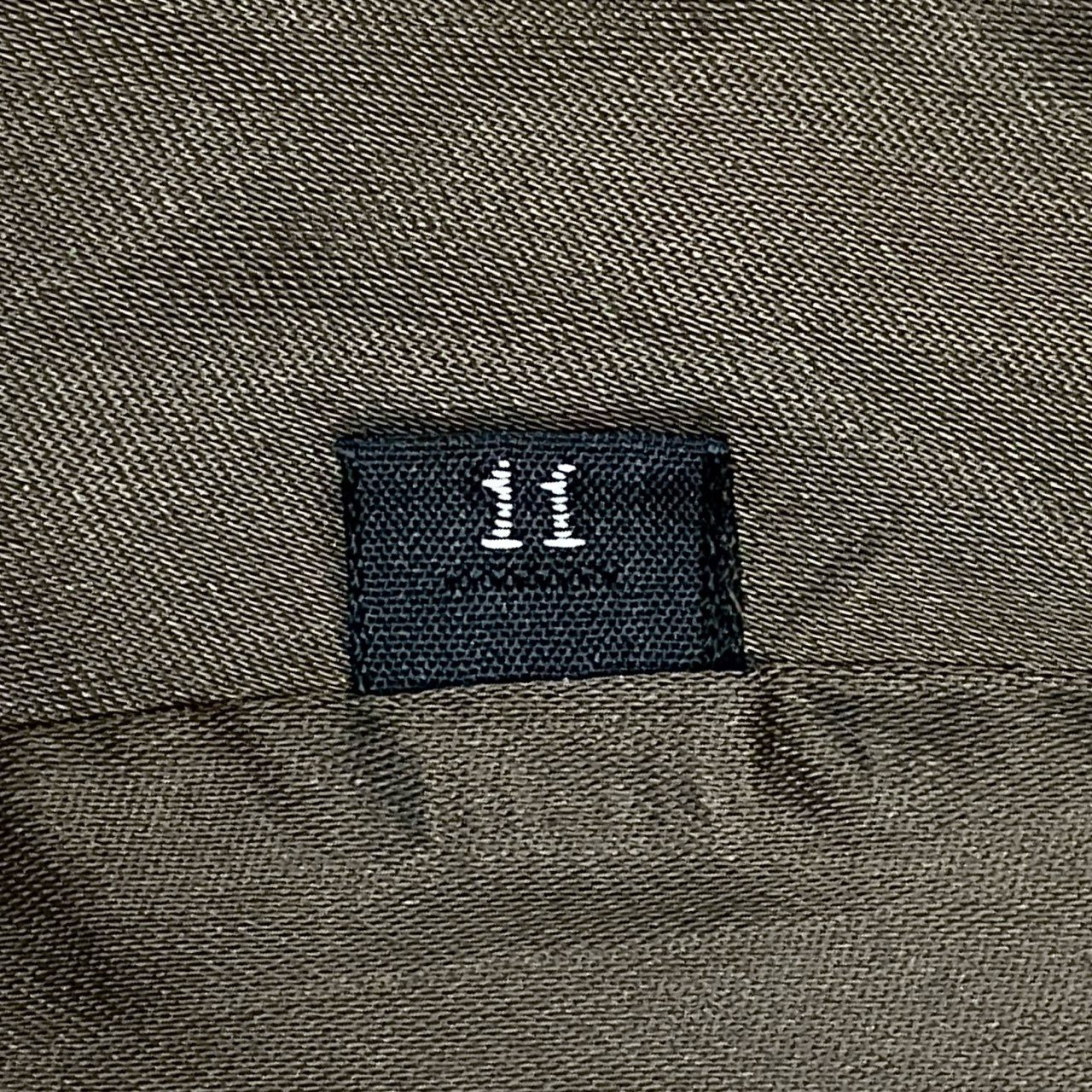 表記サイズ11、実寸は着丈110cm・肩幅38cm・身幅56cm・袖丈57cmのため、身長155〜165cm前後でふくらはぎ中〜下程度のロング丈バランスです。
