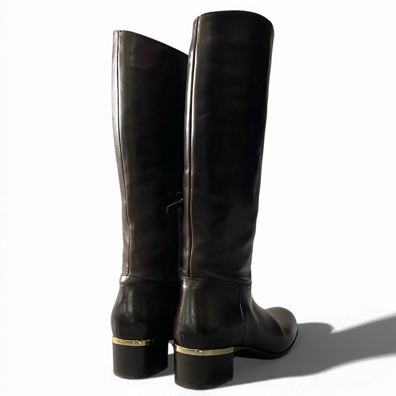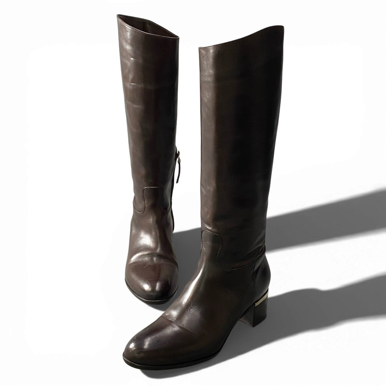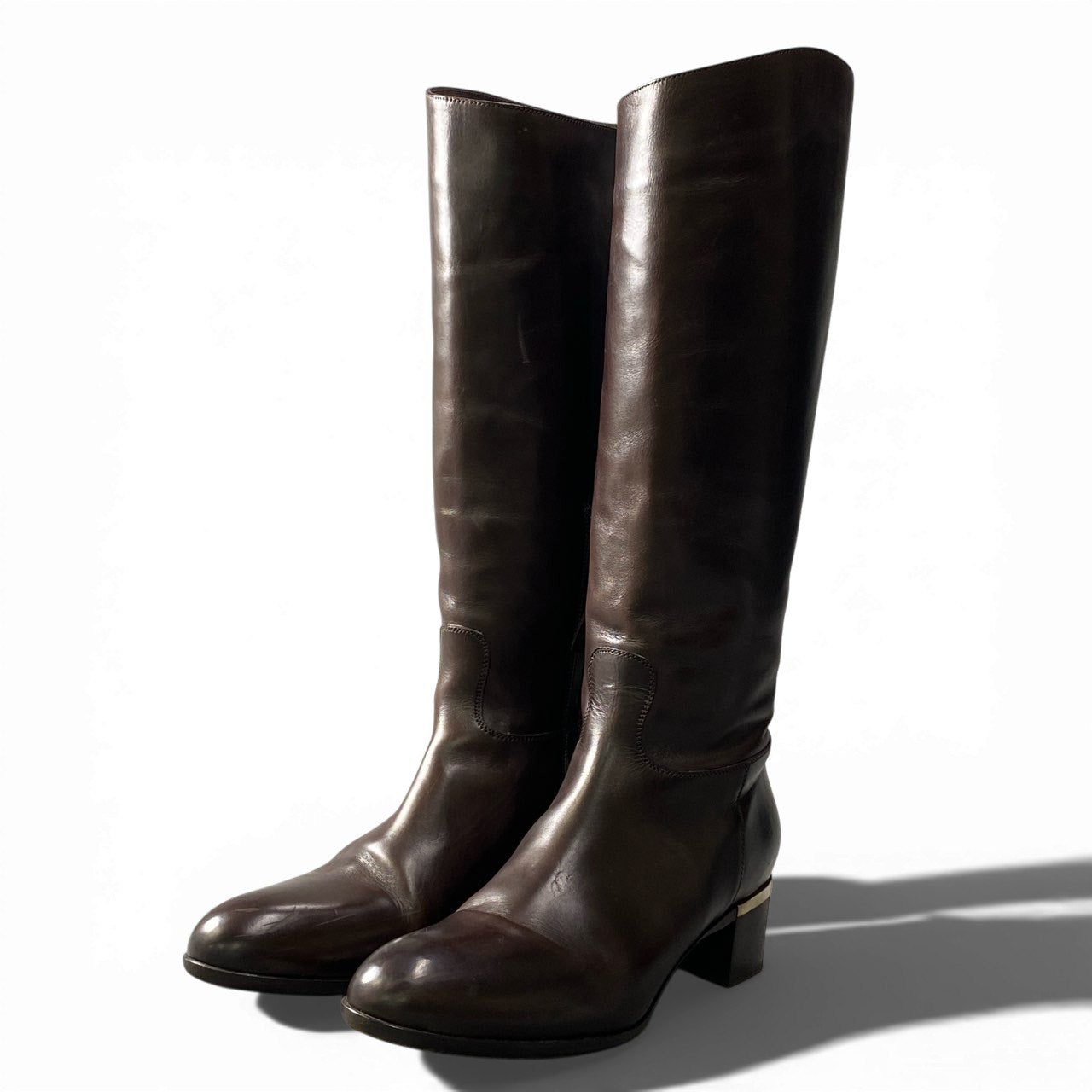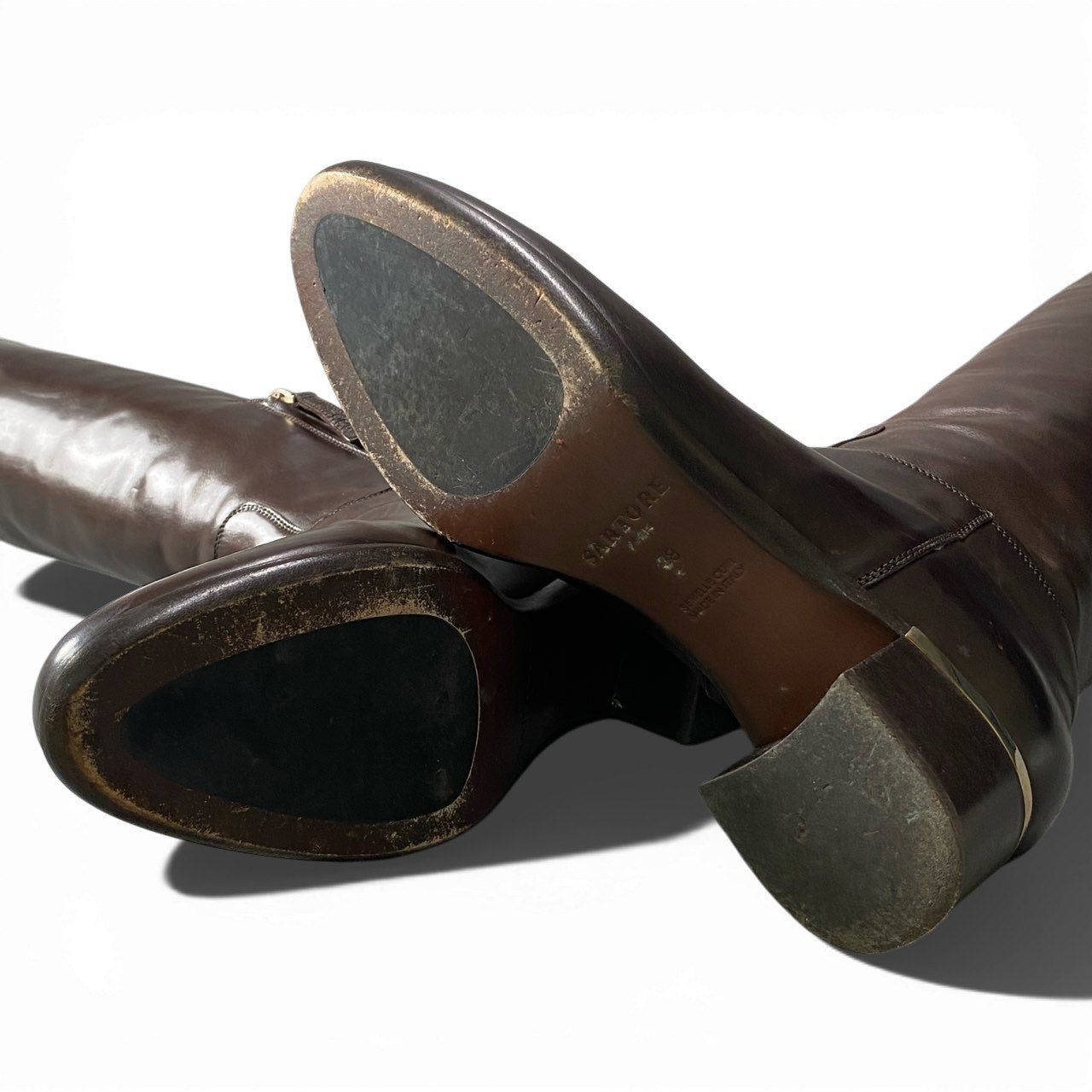 2a23 SARTORE サルトル ラウンドトゥ レザー ロングブーツ ミドルヒール サイドジップ イタリア製 レディース 女性用 サイズ38 ブラウン leatheru02t