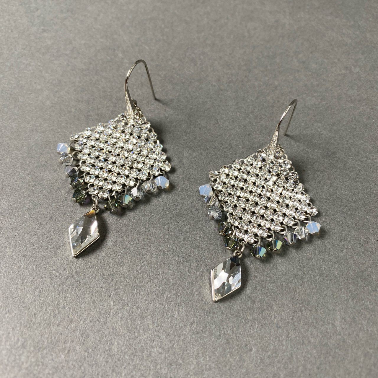 Pf16-3 《美品》 SWAROVSKI スワロフスキー クリスタル メッシュ ピアス ビジュー ダイヤ 結婚式 セレモニー ジュエリー