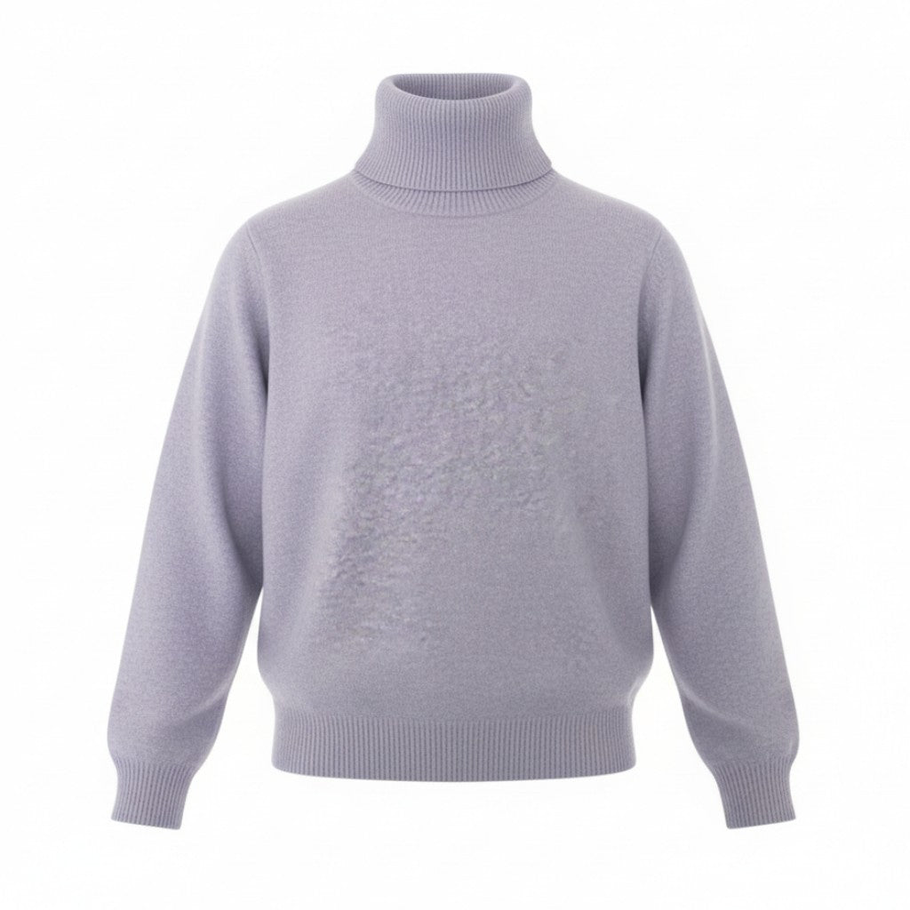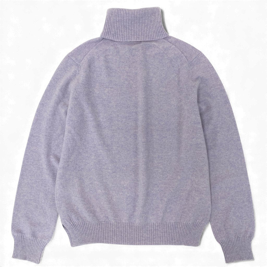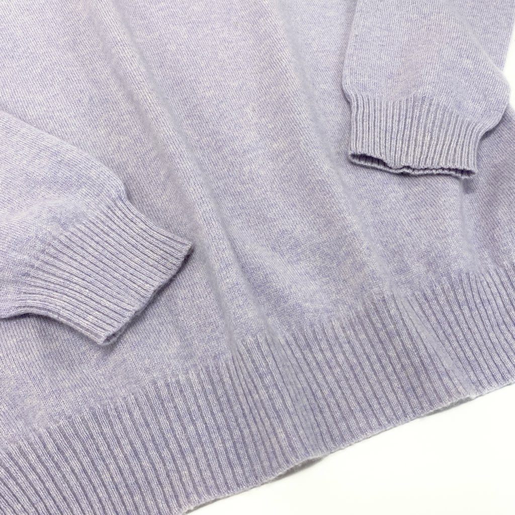 淡いラベンダーグレー系カラーが上品な、Drawerのカシミヤニットセーターです。柄のない無地デザインに、首元を暖かく包むリブ編みのタートルネック、袖口と裾も同素材のリブ仕様で洗練された印象。マットで滑らかなカシミヤ素材ならではの柔らかさと軽さが魅力です。デニムやスラックス、スカートまで幅広く合わせやすく、通勤から休日のきれいめカジュアルまで活躍します。