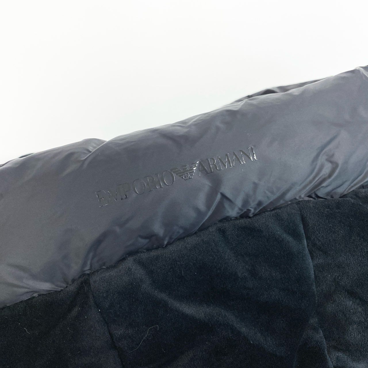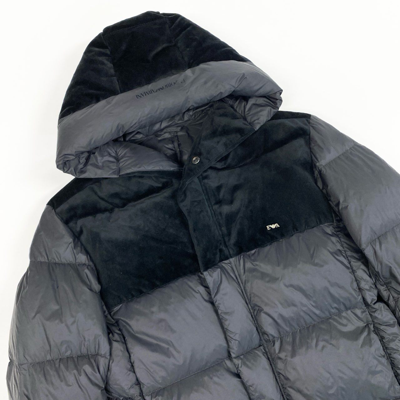 71a23 EMPORIO ARMANI エンポリオアルマーニ スーパーライト ダウンジャケット ベロア切替デザイン ダブルジップ サイズ48 ブラック メンズ 男性用 アウターk02i