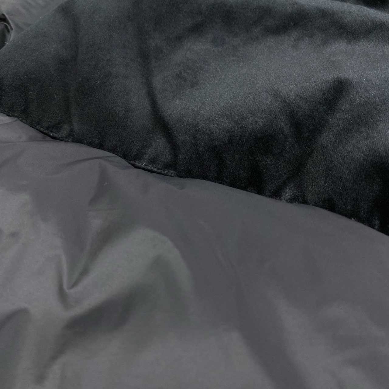 チャコールグレー×ブラック系の落ち着いた配色に、上部のベロア切替がアクセントになったアルマーニらしい洗練デザインです。 表地はマット寄りのナイロン素材で、スポーティーになりすぎず上品な印象を演出します。 ダブルジップ仕様かつスーパーライト設計のため、軽量でストレスのない着心地が魅力です。 デニムやスラックスとも相性が良く、通勤・街着・旅行など幅広いシーンで活躍する一着です。