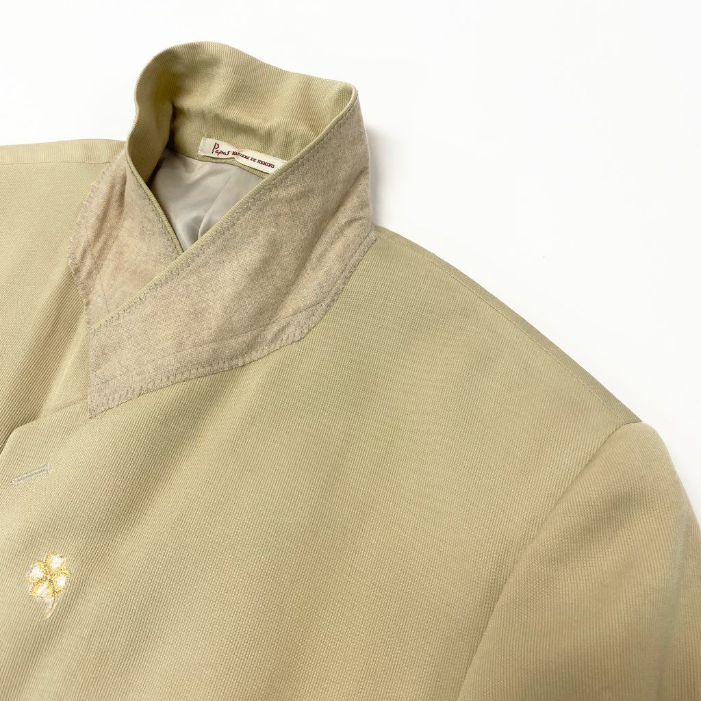 40l25 Papas パパス テーラードジャケット サマージャケット M ベージュ シルク100 メンズu02t