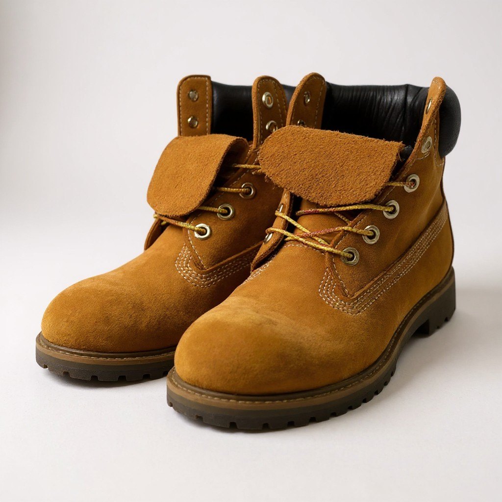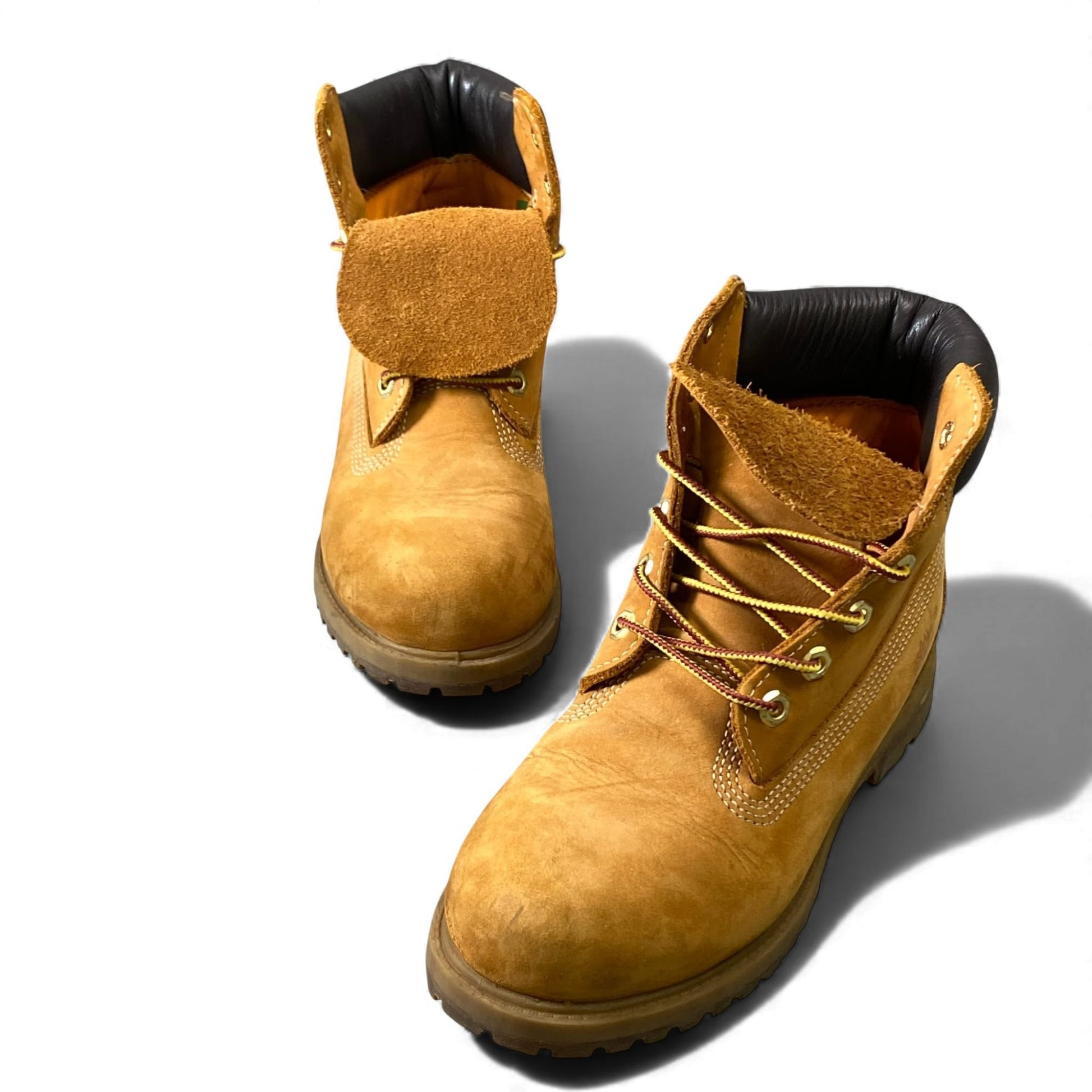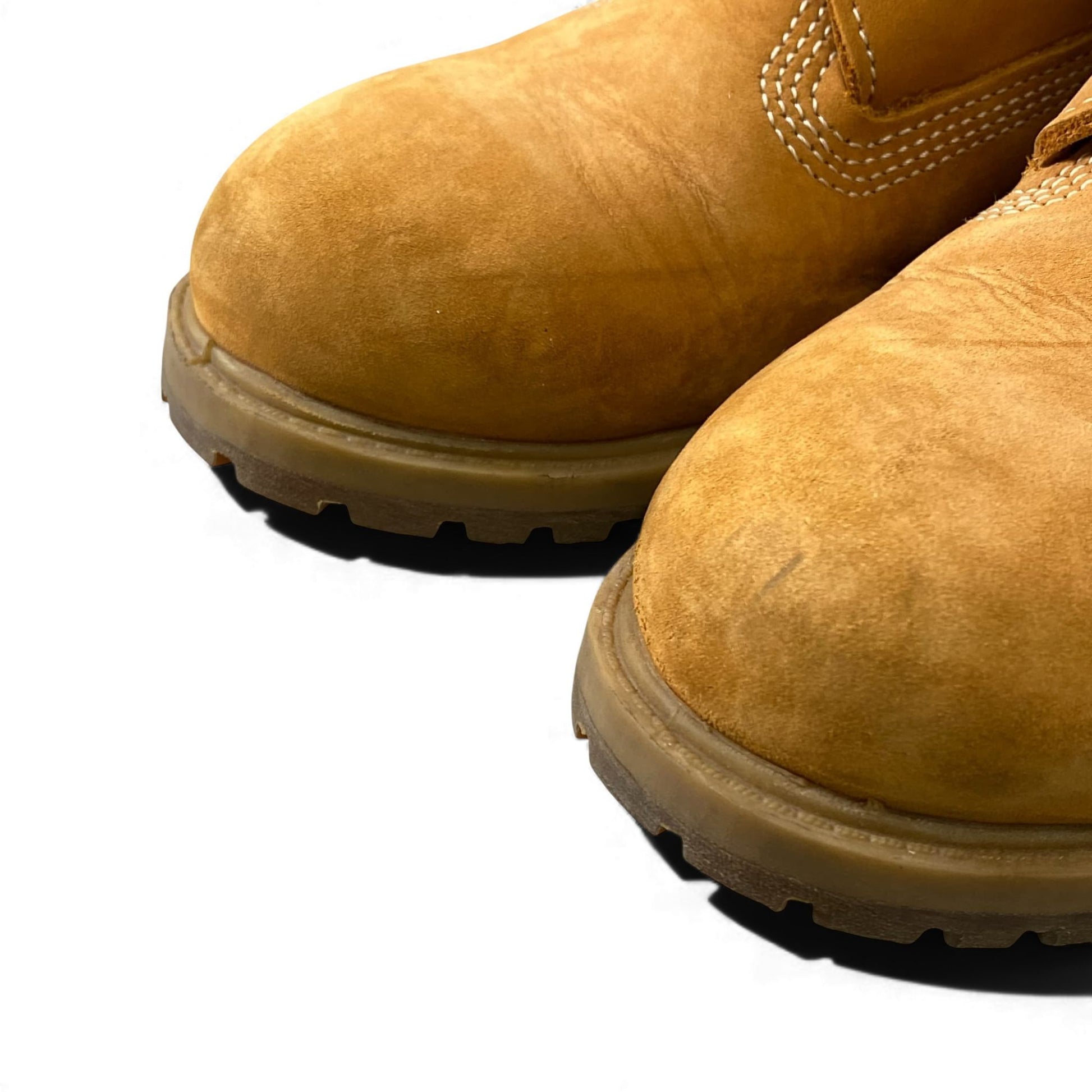 キャメル寄りのイエロースエードを使用した、ティンバーランドを象徴する6インチプレミアムウォータープルーフブーツ(10361)です。マットで起毛感のあるスエードに、ゴールドのハトメ金具とダブルステッチの補強が映え、耐久性とデザイン性を両立。パッド入りのブラックカラーは足首をしっかり支え、長時間の歩行でも快適です。アウトドアはもちろん、ストリート・カジュアルコーデのアクセントにも適した万能な一足です。
