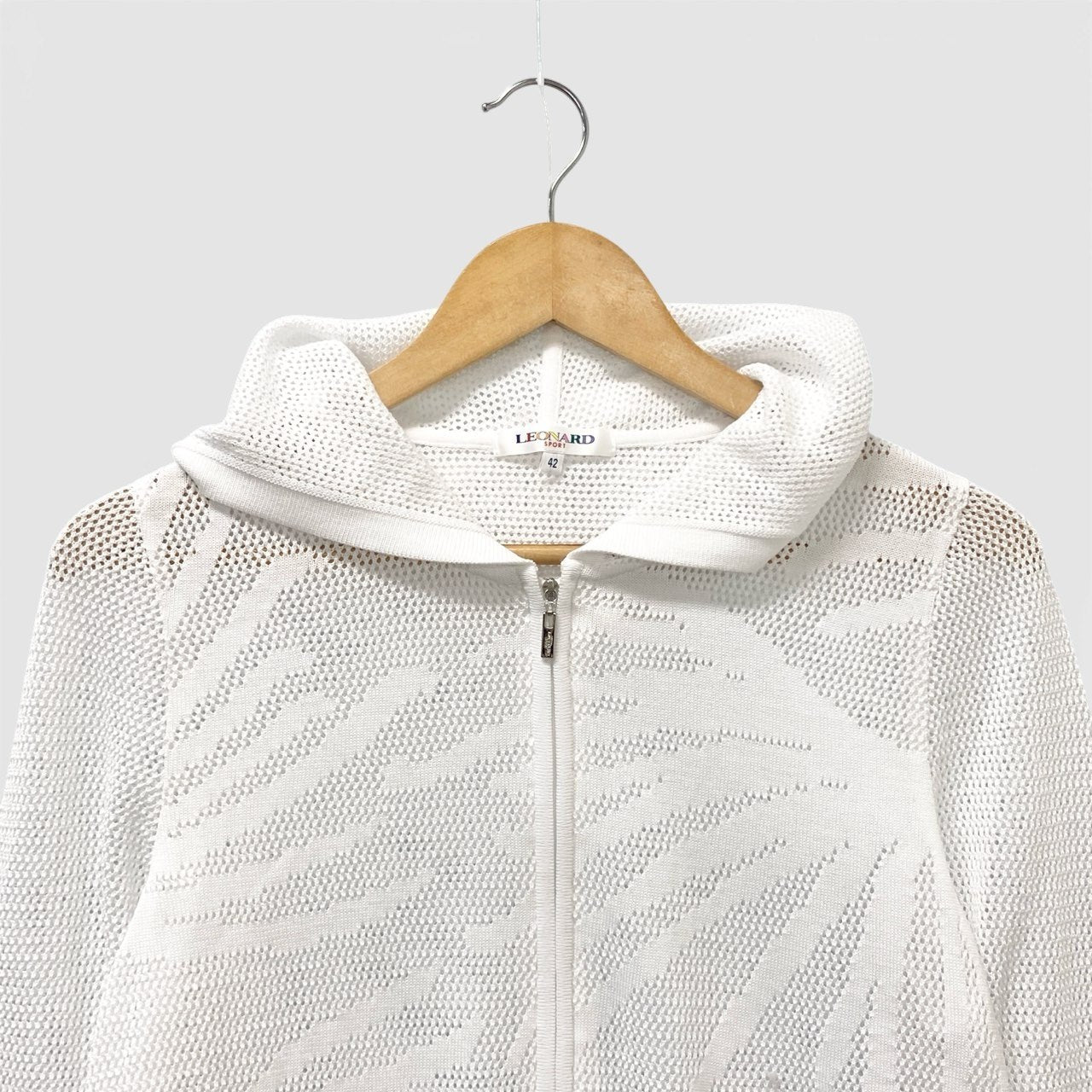 14b13 LEONARD レオナール ニットフーディージャケット ジップアップパーカー トップス 0577362 42サイズ ホワイト レディース 女性用u02t