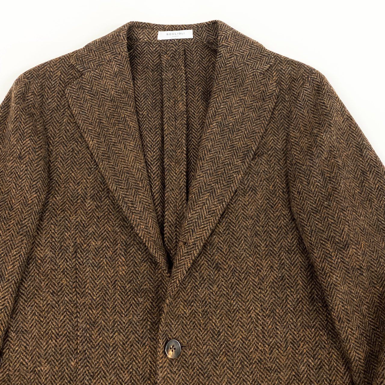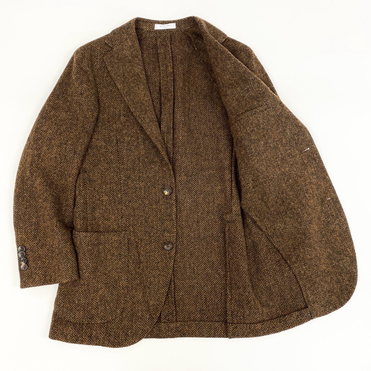 76g4 【美品】BOGLIOLI ボリオリ ヘリンボーン 3B ツイードジャケット テーラードジャケット サイズ42 ブラウン メンズ ドレスジャケット